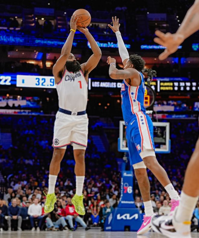 乔治复出马克西39分哈登里程碑 76人胜快船